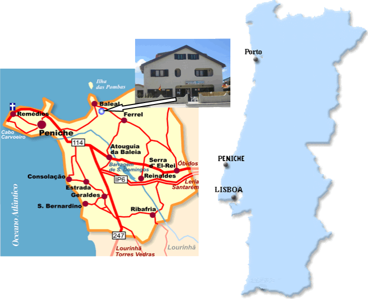 Após a rotunda do Baleal circule durante 250 metros e à sua direita encontrará o Alojamento Baleal à Vista.